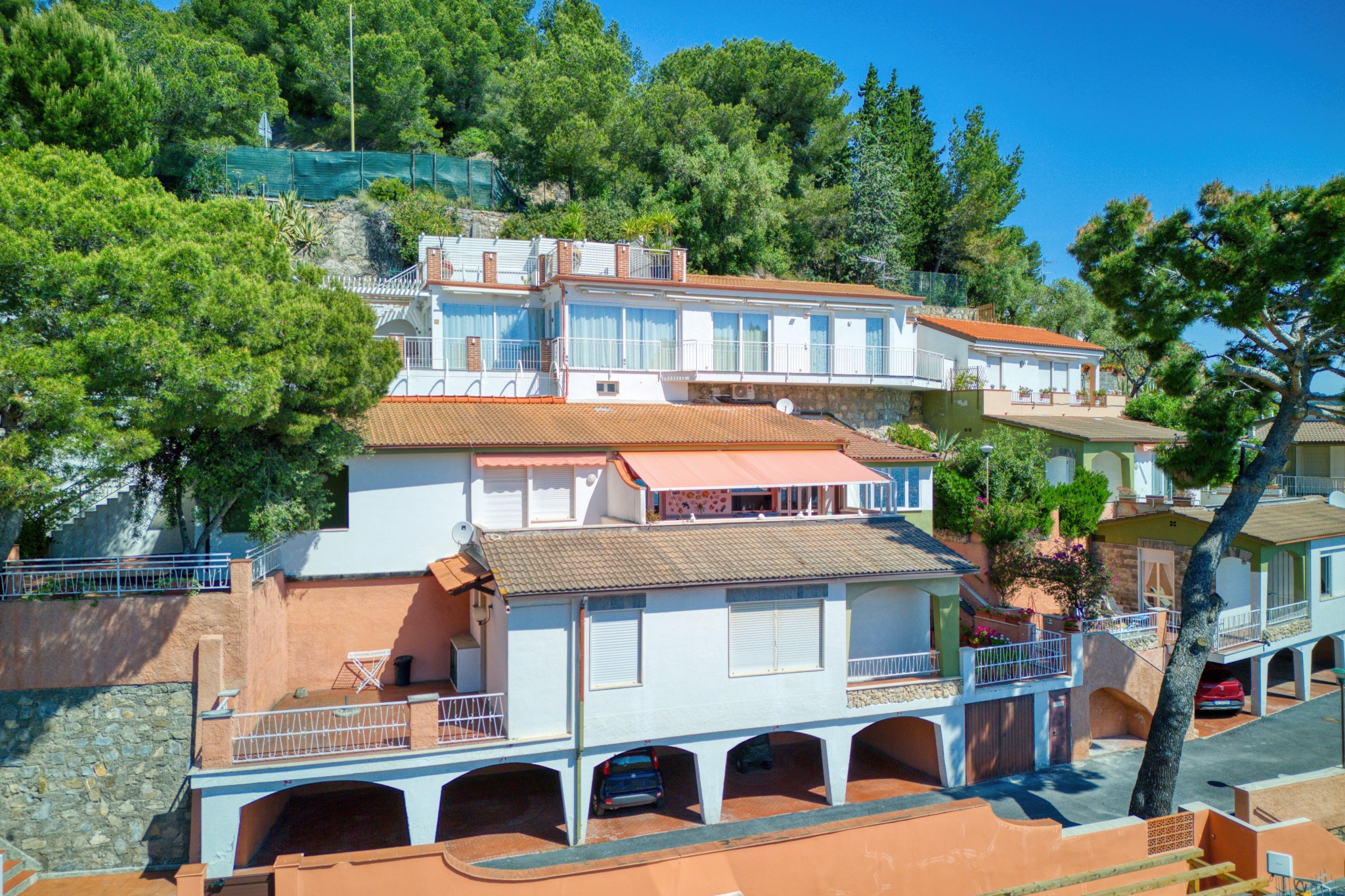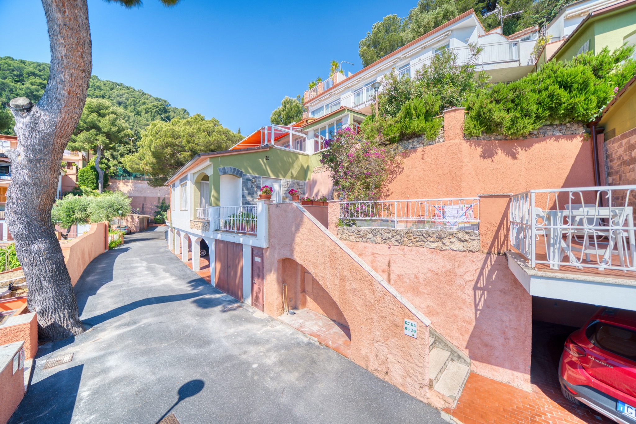 Appartamento situato in Liguria all’interno di un elegante complesso residenziale composto da più edifici immersi nel verde.