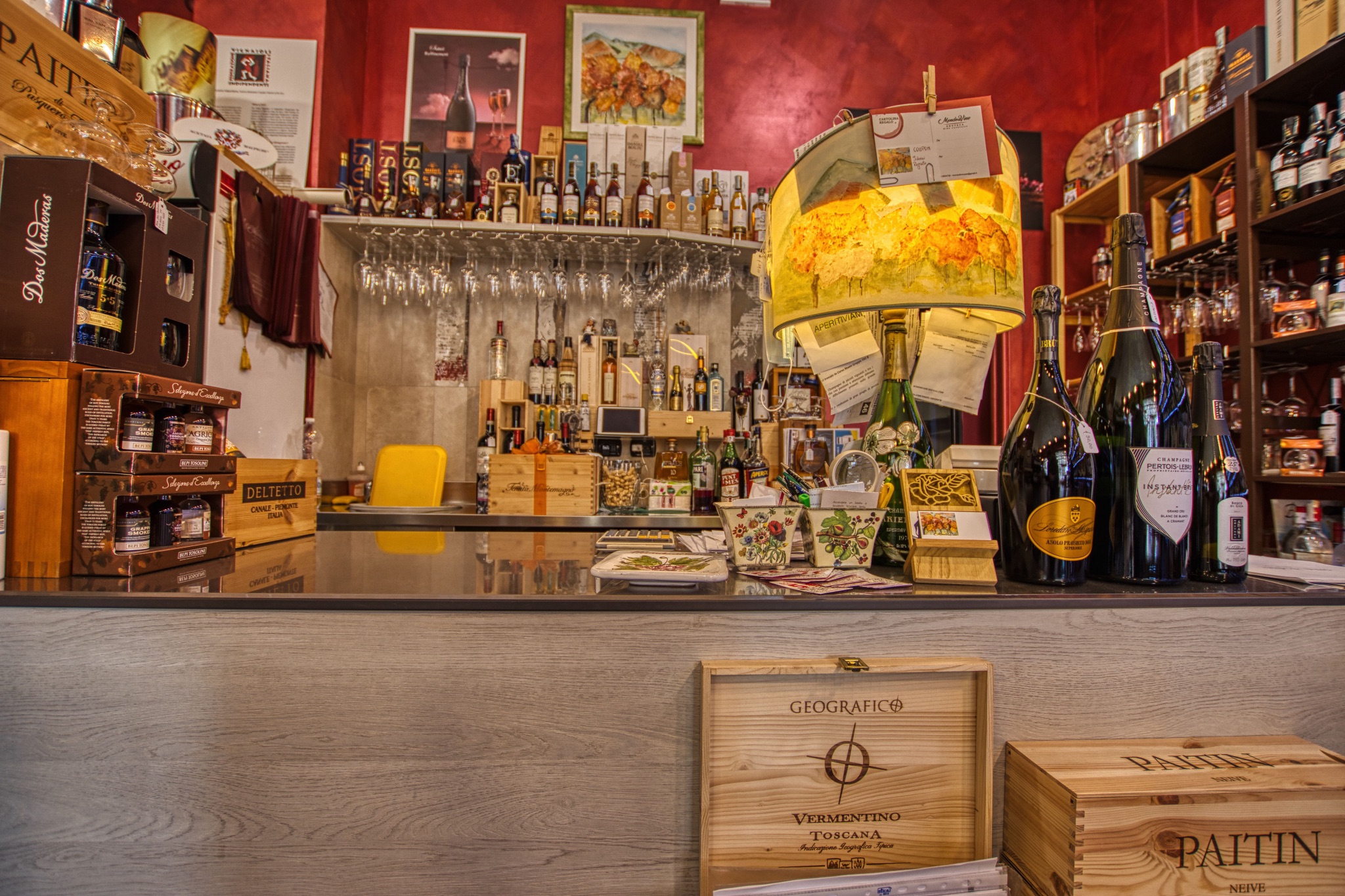 Le fotografie valorizzano gli ambienti, i dettagli del locale e l’atmosfera della vineria, mettendo in evidenza il carattere del negozio.