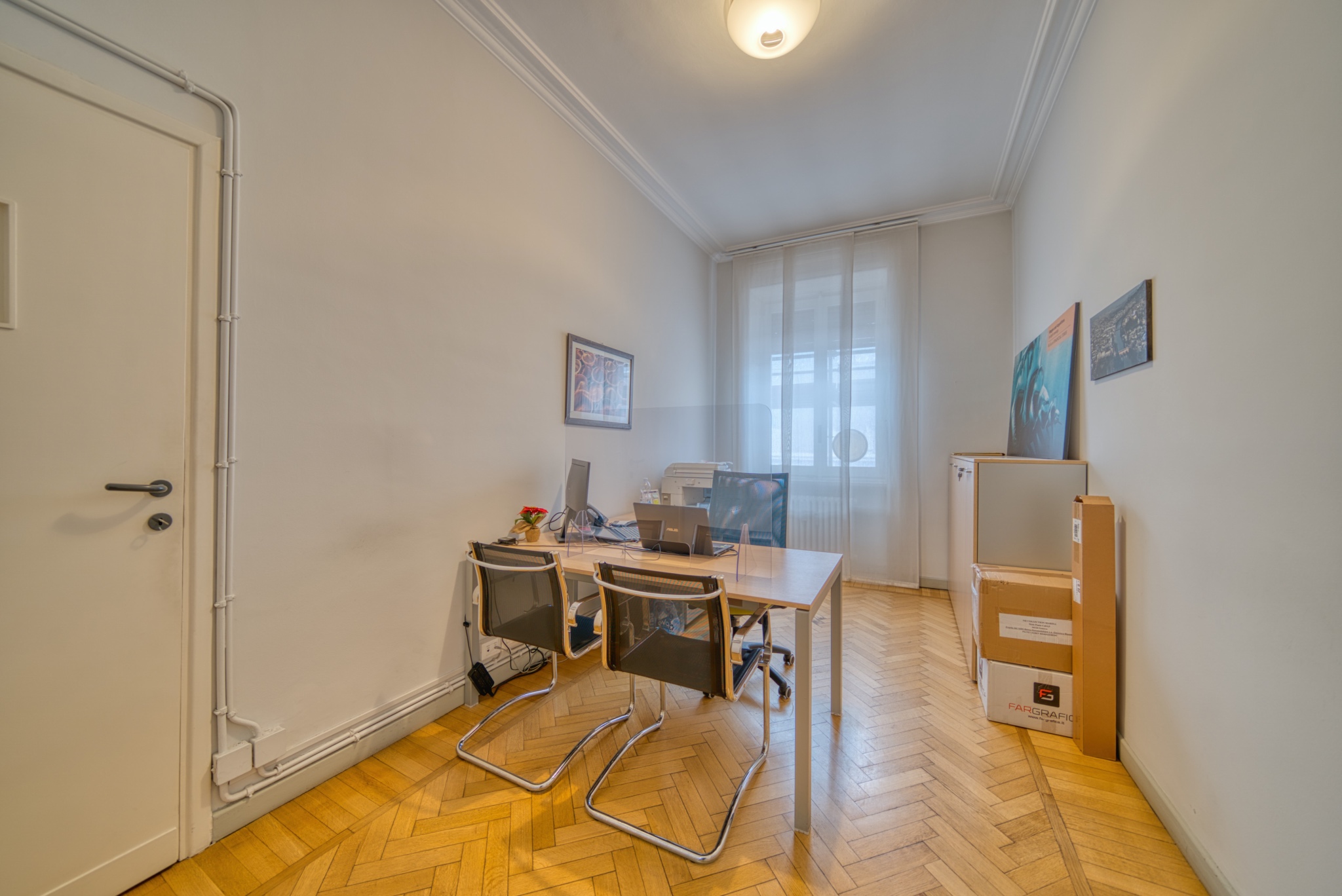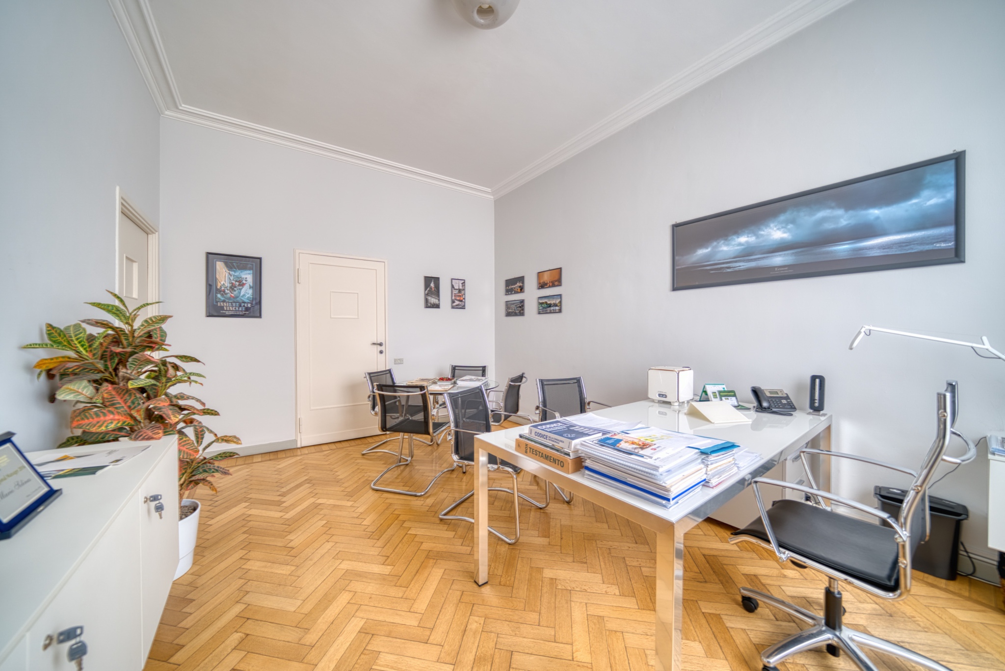 Gli ambienti sono luminosi e funzionali, ideali per studi professionali o uffici. Le fotografie valorizzano gli spazi interni e la posizione strategica nel cuore di Torino.